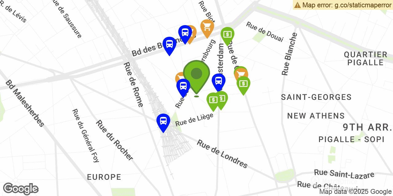 Itinéraires vers Rue de Moscou à Paris en empruntant les transports en commun. Train: J. L. Métro: 13. 14. 2.