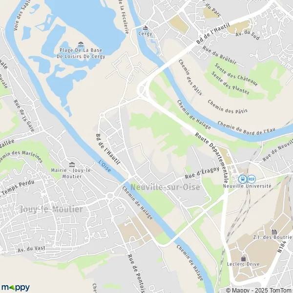 Neuville-sur-Oise appartient au département du Val-d'Oise (dont le chef-lieu est Cergy) Insee. Wikipedia. Plan des rues de Neuville-sur-Oise ». Codes postaux d'autres villes du Val-d'Oise : Argenteuil. Arnouville.