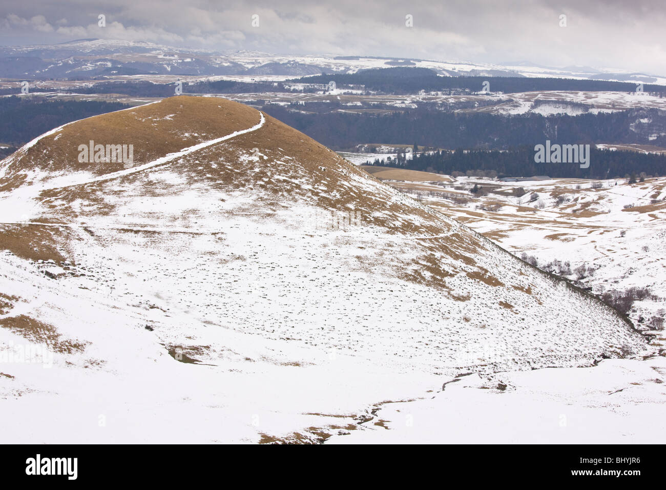Winter on the Col de La Croix Morand (1401 m) in the Volcans d'Auvergne Regional Natural Park
