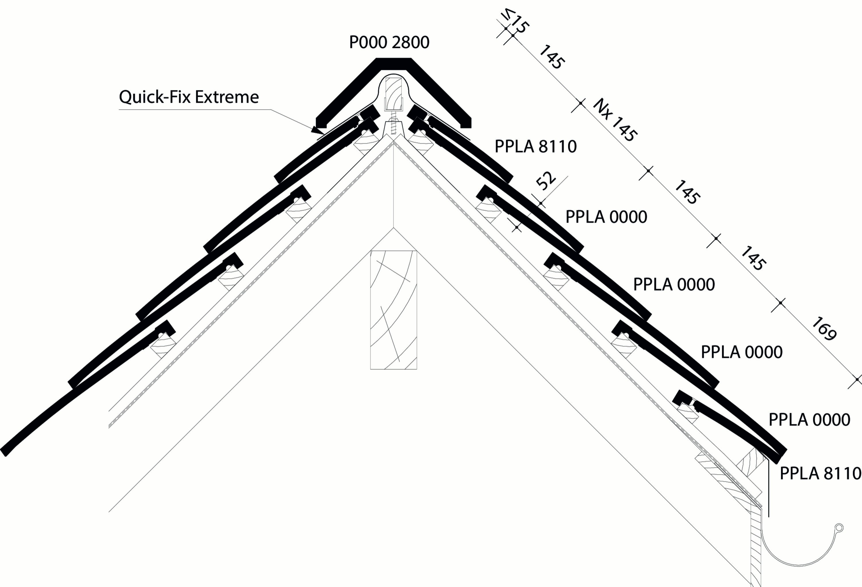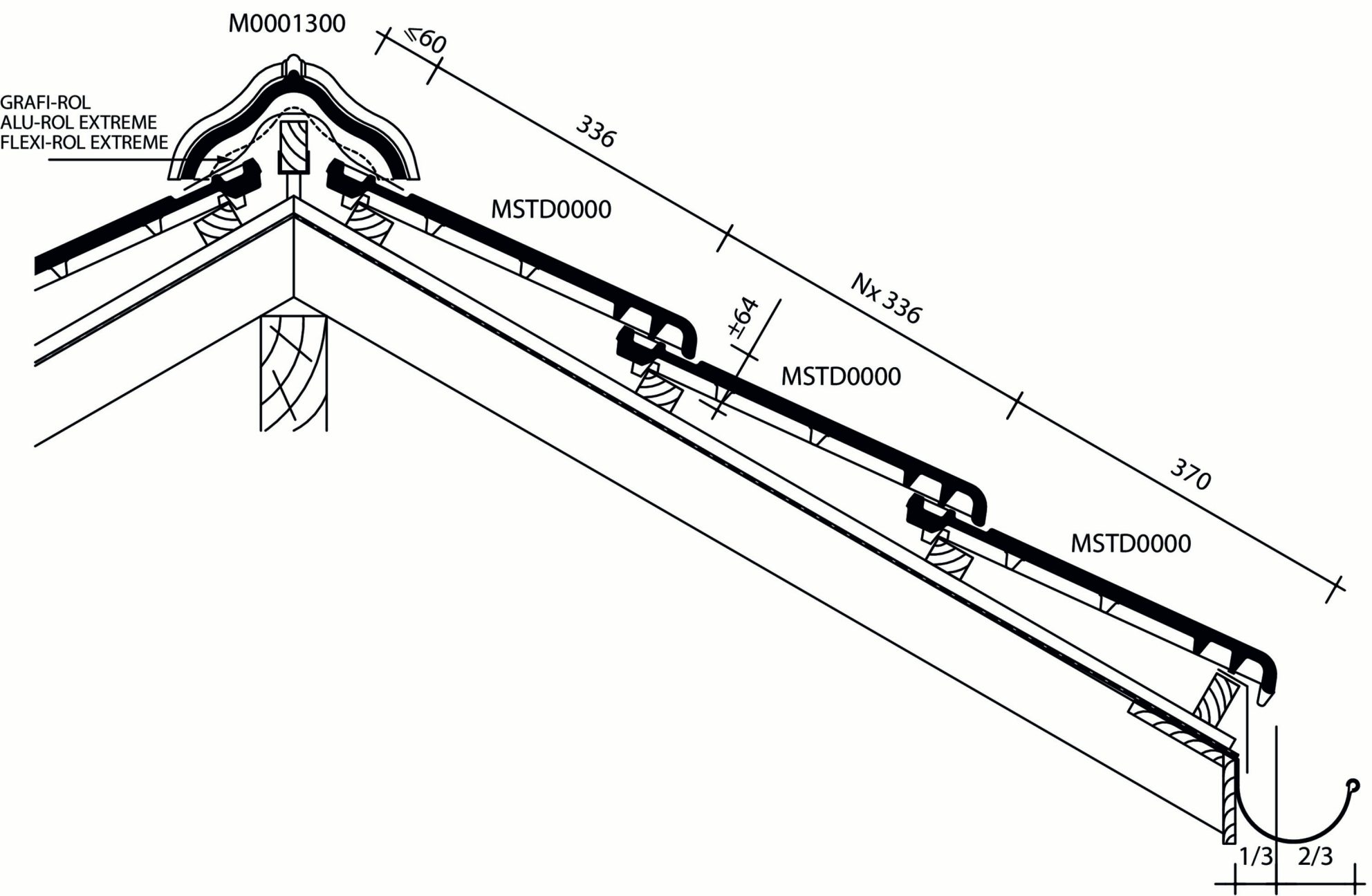 Les dimensions du recouvrement de la partie métallique. Les dimensions de la partie qui recouvre le métal dépendent du type de tuiles utilisé : Tuiles à emboitement et à glissement : au moins 8 cm ; Tuiles plates en terre cuite ou en béton : 6 cm ; Distance entre les tuiles de rive en biseau : au moins 8 cm (norme NF DTU de la série 40).