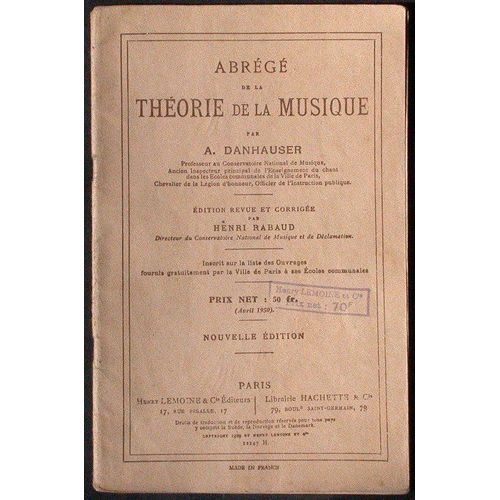 ABREGE DE LA THEORIE DE LA MUSIQUE by DANHAUSER A. bon Couverture souple (1931) LeLivre