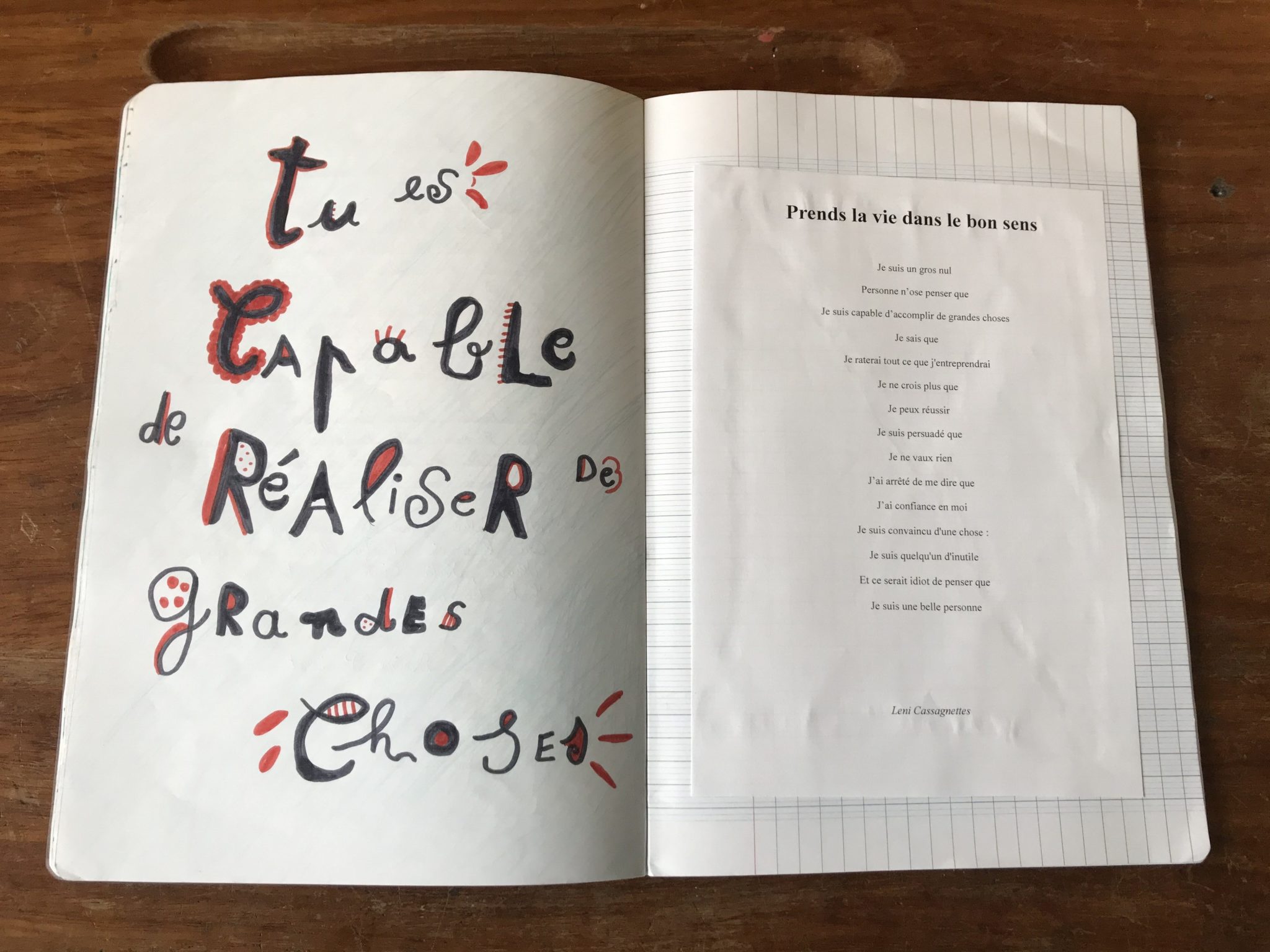PRENDS LA VIE DANS LE BON SENS. 9 / 100. Très joli poème, écrit par Leni Cassagnettes, maitresse spécialisée. A lire dans les deux sens pour se remonter le moral : Leni Cassagnettes. Je suis un gros nul. Personne n' ose penser que. Je suis capable d' accomplir de grandes choses. Je sais que.