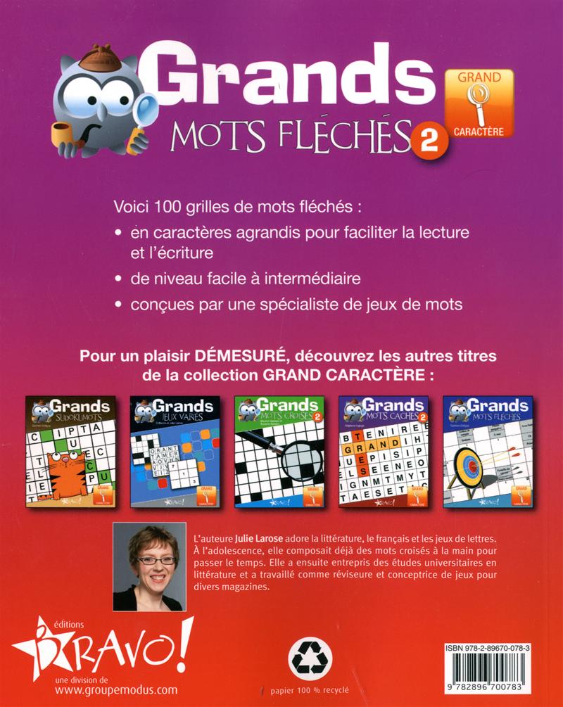 18,95 $. quantité de Le grand livre des mots fléchés. Ajouter au panier. Pour tous ceux qui ont le sens des mots! Trouvez les mots correspondant aux définitions placées dans la grille et suivez les flèches pour remplir les cases lettre par lettre. Au fil des grilles, devenez un expert! Une compilation de 280 grilles, de format 9 x 12.